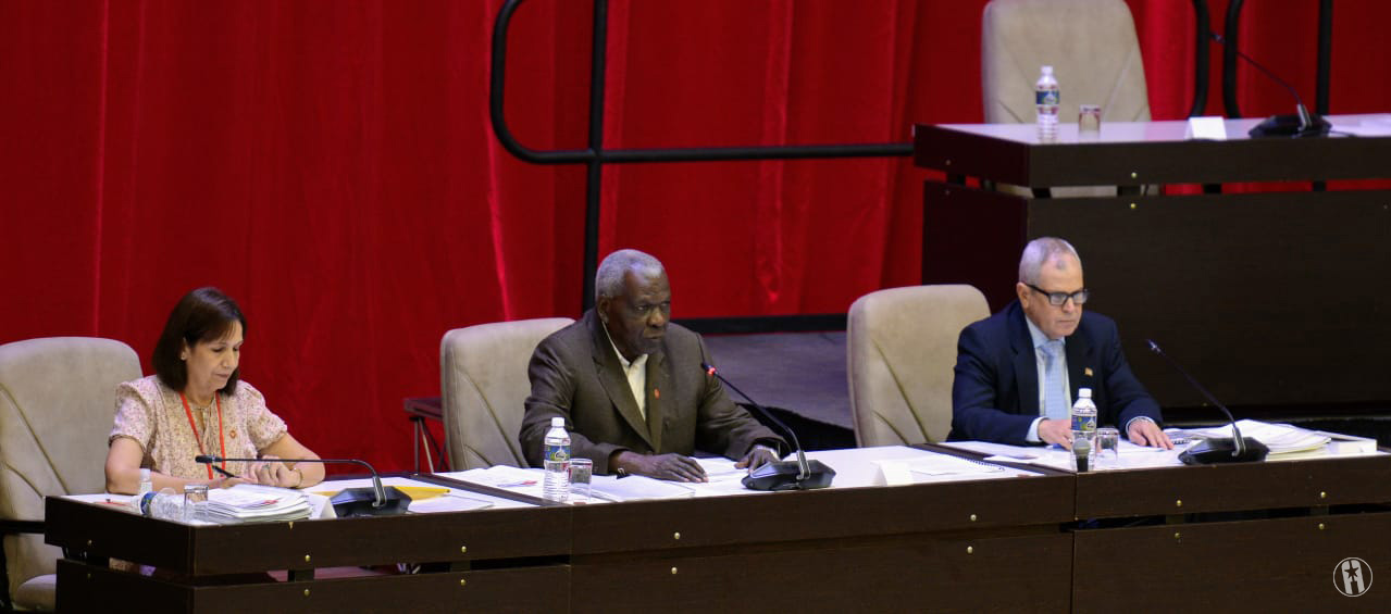 Esteban Lazo Hernández, miembro del Buró Político y presidente del Parlamento cubano, junto a Ana María Mari Machado (I), vicepresidenta de la ANPP y del Consejo de Estado, y Homero Acosta Álvarez (D), secretario de la ANPP y del Consejo de Estado, preside el X Periodo Ordinario de Sesiones de la Asamblea Nacional del Poder Popular (ANPP), en su IX Legislatura (Antonio Rolando Hernández Mena / Cubahora)