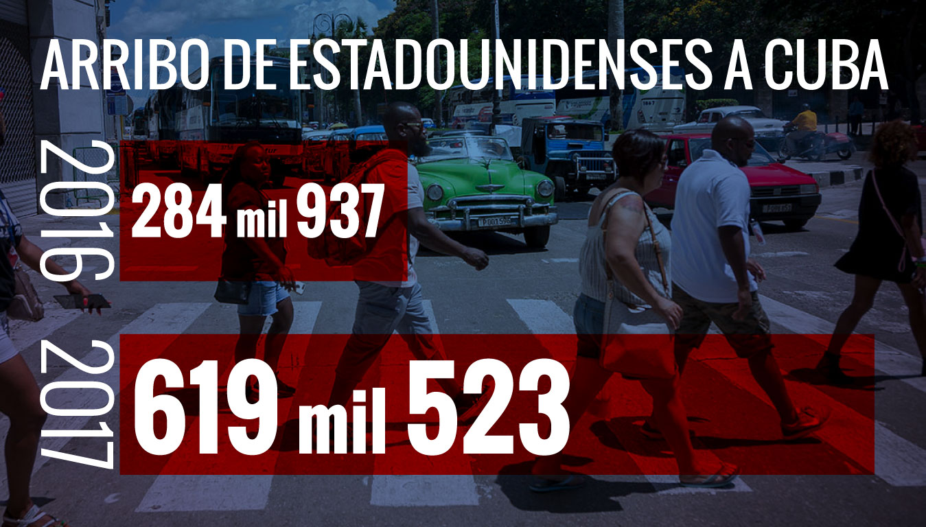 Arribo de estadounidenses a Cuba en 2016 y 2017 (Infografía: Alejandro Fabregas Pombo/ Cubahora).