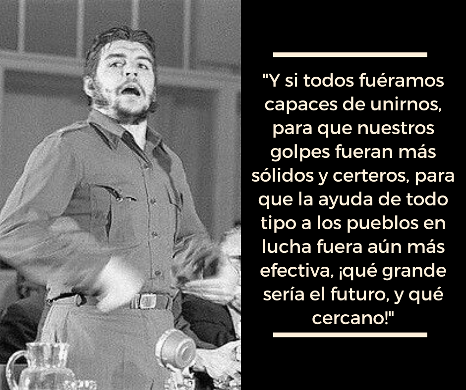 Votemos como dice este documento por romper de raíz con aquello que nos domina e inmoviliza y luchar por una paz con justicia social. Por supuesto que el Che con esa vista futurista ve en la unidad una táctica de lucha. La resistencia de los pueblos ya es una realidad.