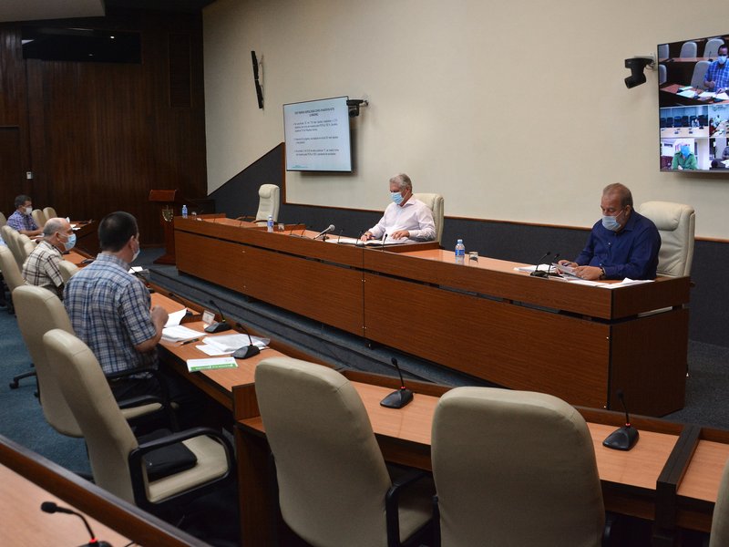 En la reunión, el ministro de Salud Pública, José Angel Portal Miranda, actualizó sobre la situación de la COVID-19 en el país, donde hasta este martes permanecían ingresados 10 492 pacientes para la atención y vigilancia epidemiológica, en hospitales y centros de aislamiento.