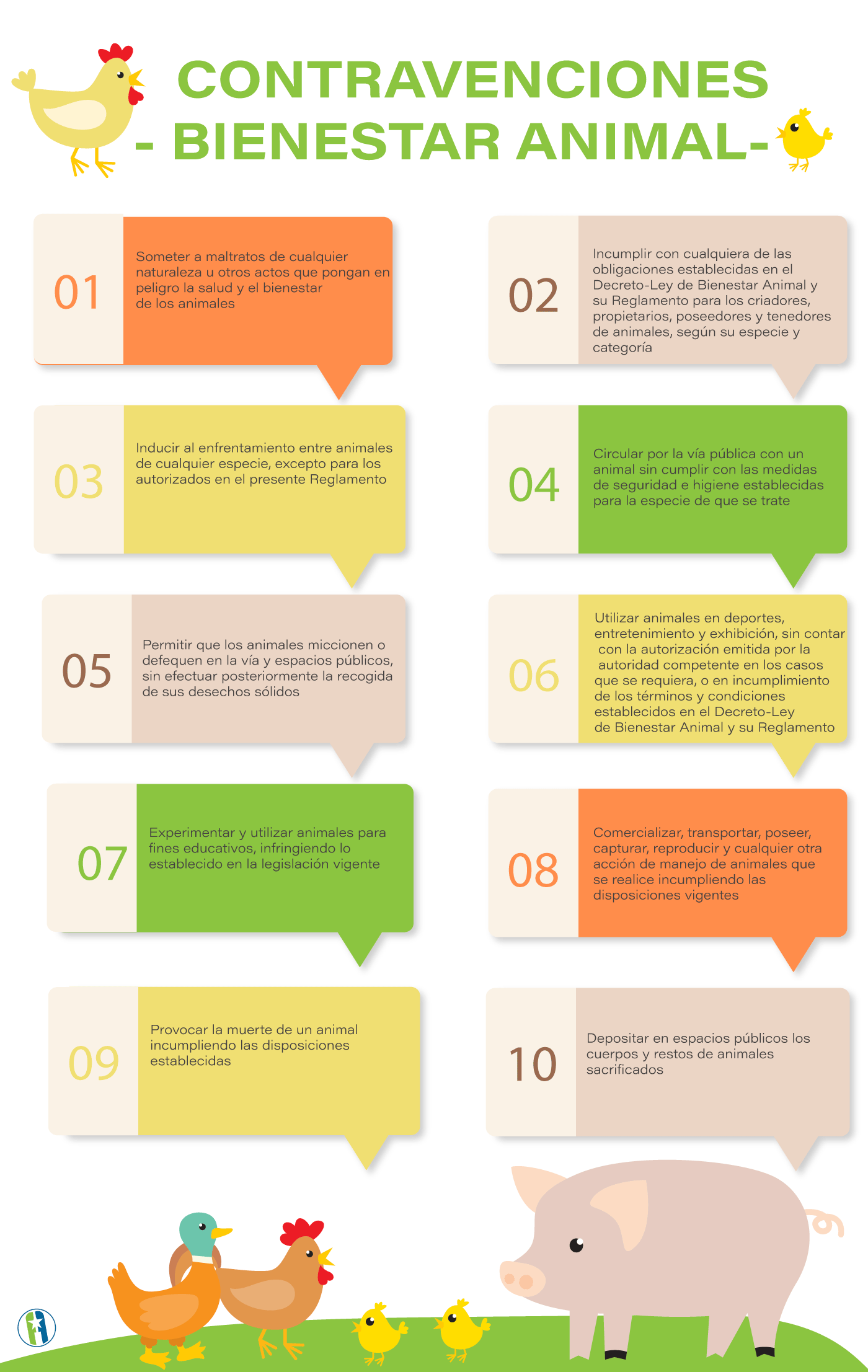 El incumplimiento de lo regulado tanto en el Decreto Ley como en su Reglamento se considera una contravención. Según la gravedad, la comisión de las conductas infractoras aplicará medidas que van desde multas hasta el retiro de licencias y decomiso de los animales.