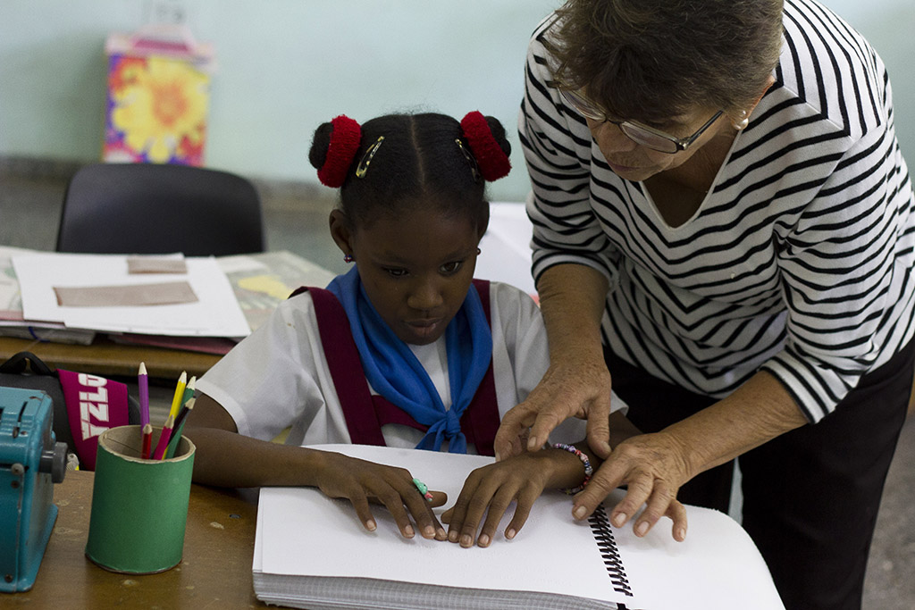 Como ninguna persona es igual a otra, ninguno de estos niños lo es, aunque tengan el mismo diagnóstico oftalmológico. Por tanto, para todos y cada uno de ellos, después de hacerle la caracterización de acuerdo a sus necesidades educativas, se traza una estrategia de trabajo individual que va desde el trabajo educativo en la escuela hasta las orientaciones para el hogar, que incluyen la vinculación del educando con la comunidad, declaró a esta reportera Sara Valdés Iriarte, secretaria docente.