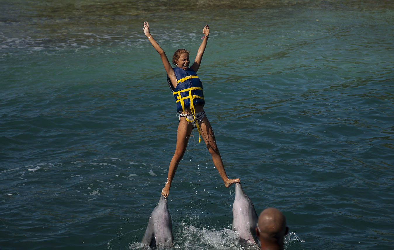 Perla y Oceanic son las estrellas del delfinario de Cienfuegos: dos ejemplares únicos que cautivan en cada espectáculo a sus visitantes. Risas, acción, mensajes para proteger al medio ambiente y mucha interacción con el público son algunas características del show.