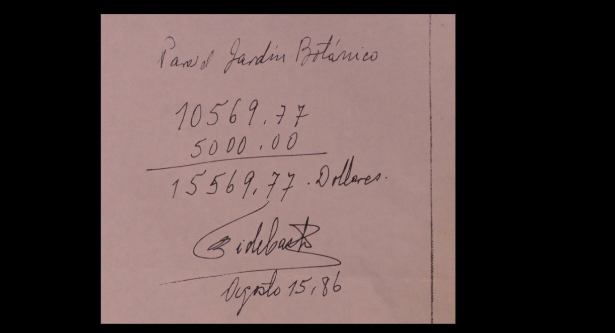 Por otro lado, en varias ocasiones el flujo de dinero fue a la inversa. Fidel le enviaba al Jardín Botánico Nacional los ingresos que le eran remitidos a él por derechos de autor de algunas publicaciones internacionales. En el Botánico se conserva la constancia de una de esas operaciones por valor de 15 569.77 USD.