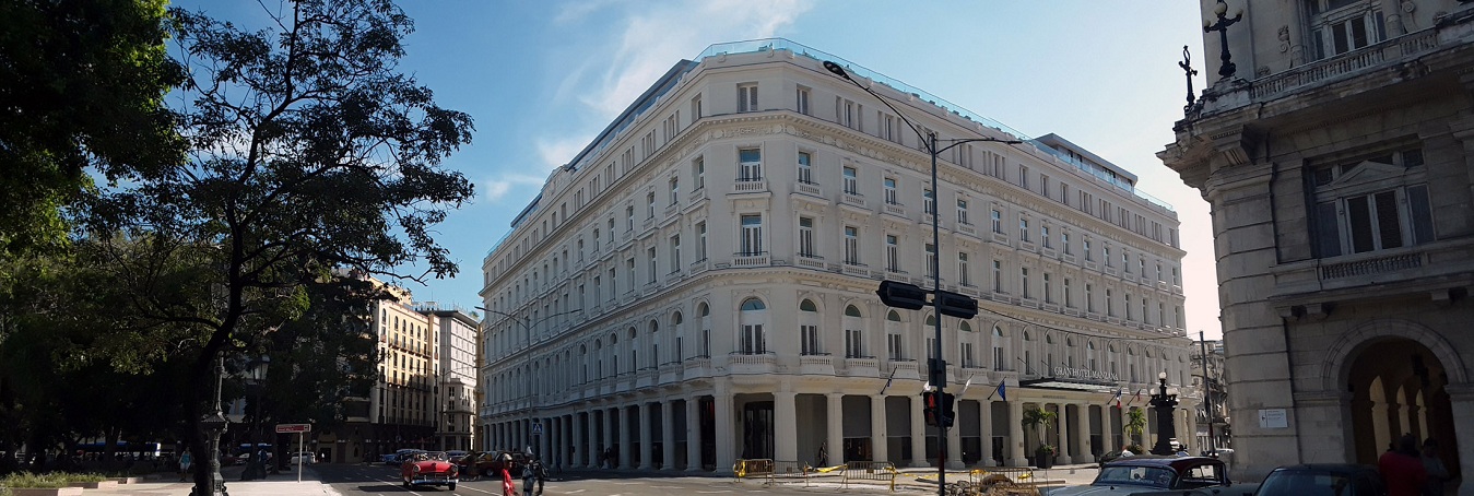 Vista panorámica donde aparece el Gran Hotel Manzana Kempinski, el primero de cinco estrellas plus de Cuba, recientemente inaugurado en La Habana. (ACN / OsvaldoGutiérrez Gómez)