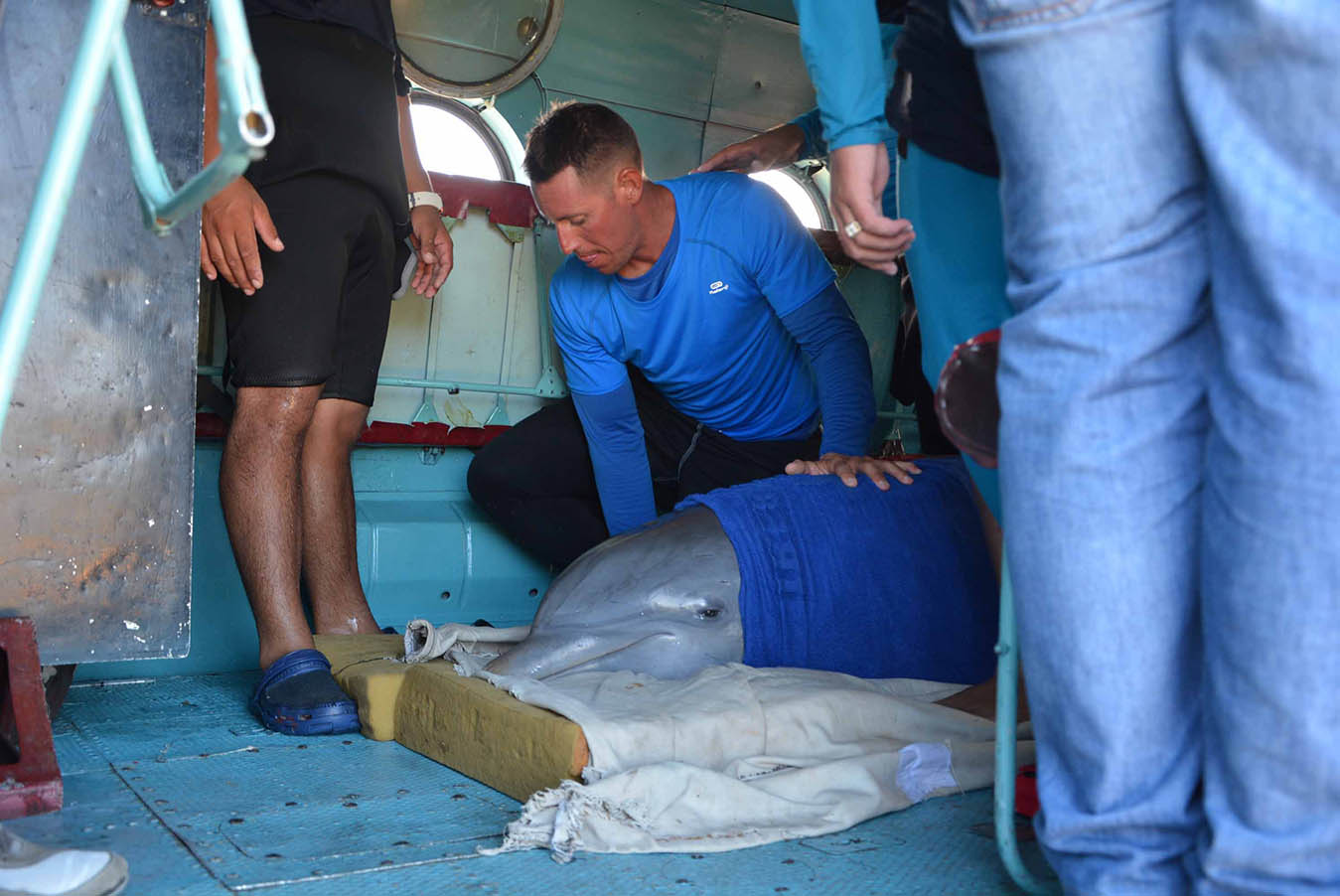 Según explicó al periódico Invasor, Ollantay Quintero Medina, jefe de los entrenadores, es la segunda vez que por igual motivo es preciso realizar ese traslado, en cuyos procedimientos interviene, de alguna manera, todo el personal del delfinario, desde la captura y ubicación de los animales en un lugar propicio para aplicarles agua, acariciarlos, mantener adecuada temperatura (27 grados centígrados) y atenuar el stress, hasta que son llevados en camillas hasta el interior del helicóptero.