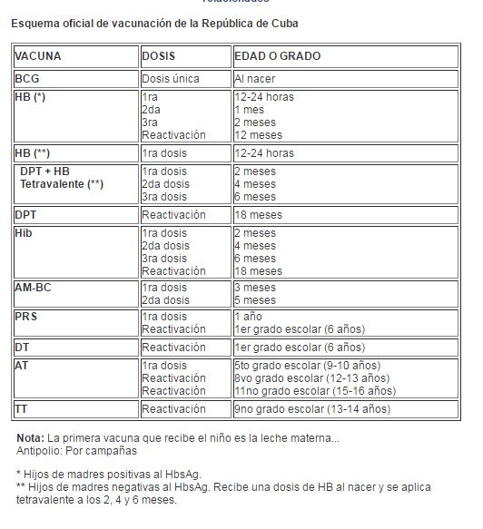 Esquema de vacunación de la República de Cuba (Fuente: Infomed)