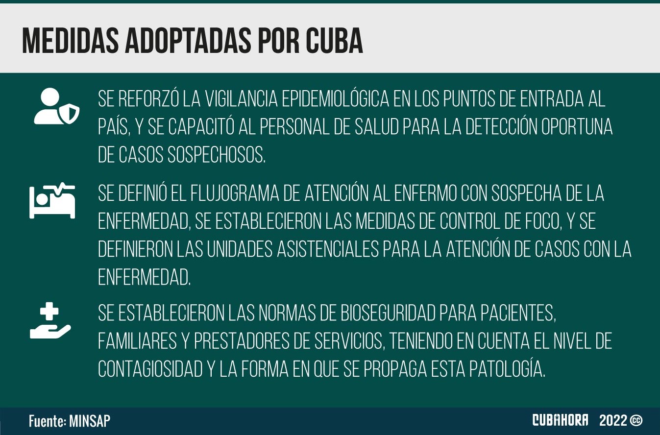 Nuestro Sistema Nacional de Salud, basado en la vigilancia epidemiológica constante, activó los protocolos correspondientes para detectar y atender a pacientes sospechosos. El doctor José Ángel Portal Miranda, Ministro de Salud, escribió en la página oficial del MINSAP que se diseñaron planes de enfrentamiento y cursos de capacitación al ser una enfermedad nunca antes afrontada en el territorio nacional.