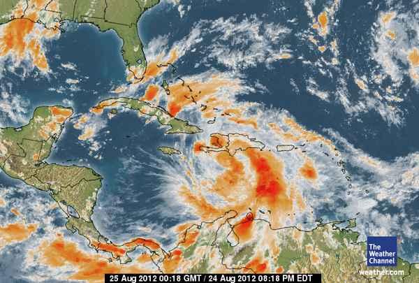 Durante la tarde la tormenta tropical Isaac ha continuado ganando en organización e intensidad y ahora posee vientos máximos sostenidos de 100 kilómetros por hora, con rachas superiores, y su presión central ha disminuido hasta 994 hectoPascal. En las últimas horas ha inclinado su rumbo al noroeste a razón de 26 kilómetros por hora.